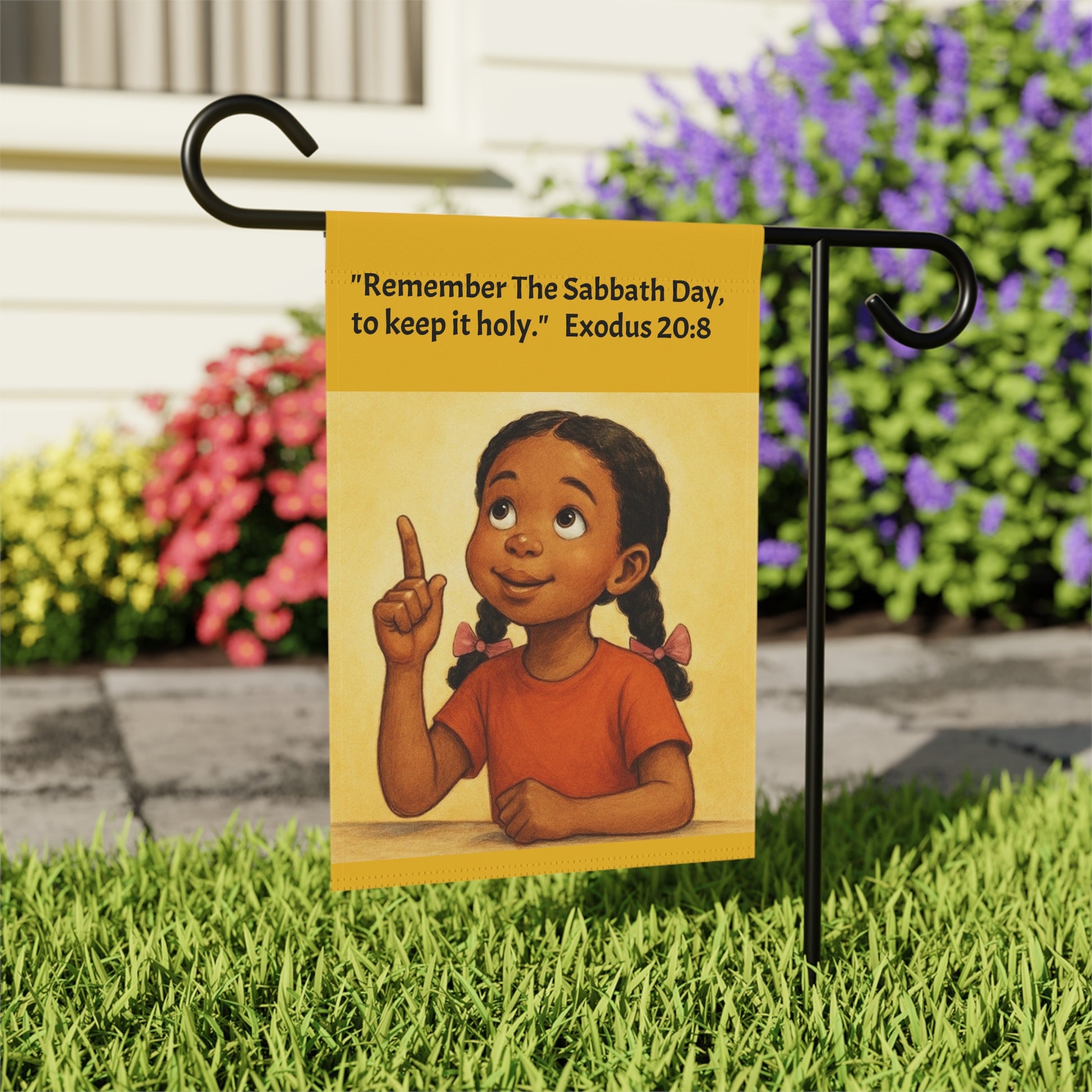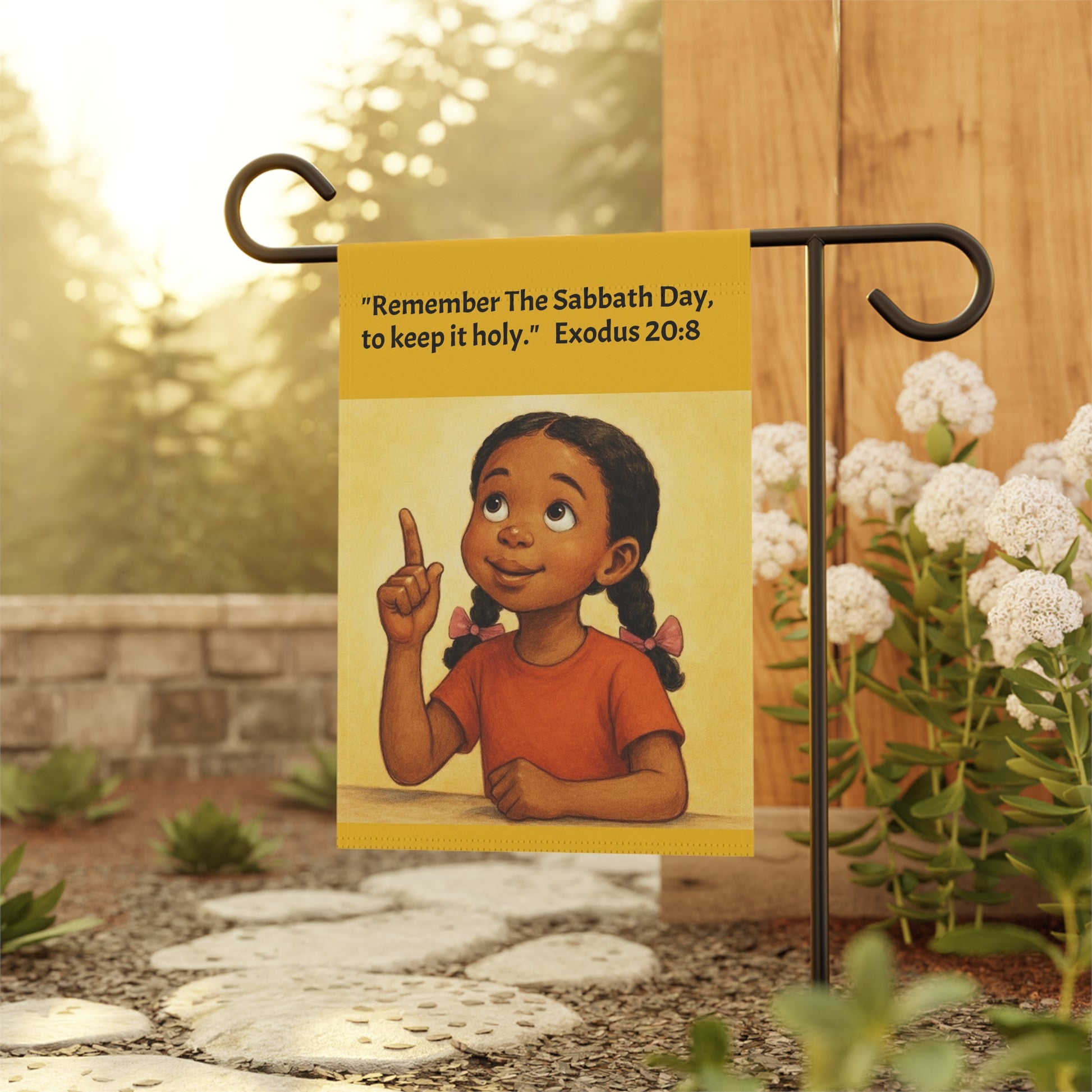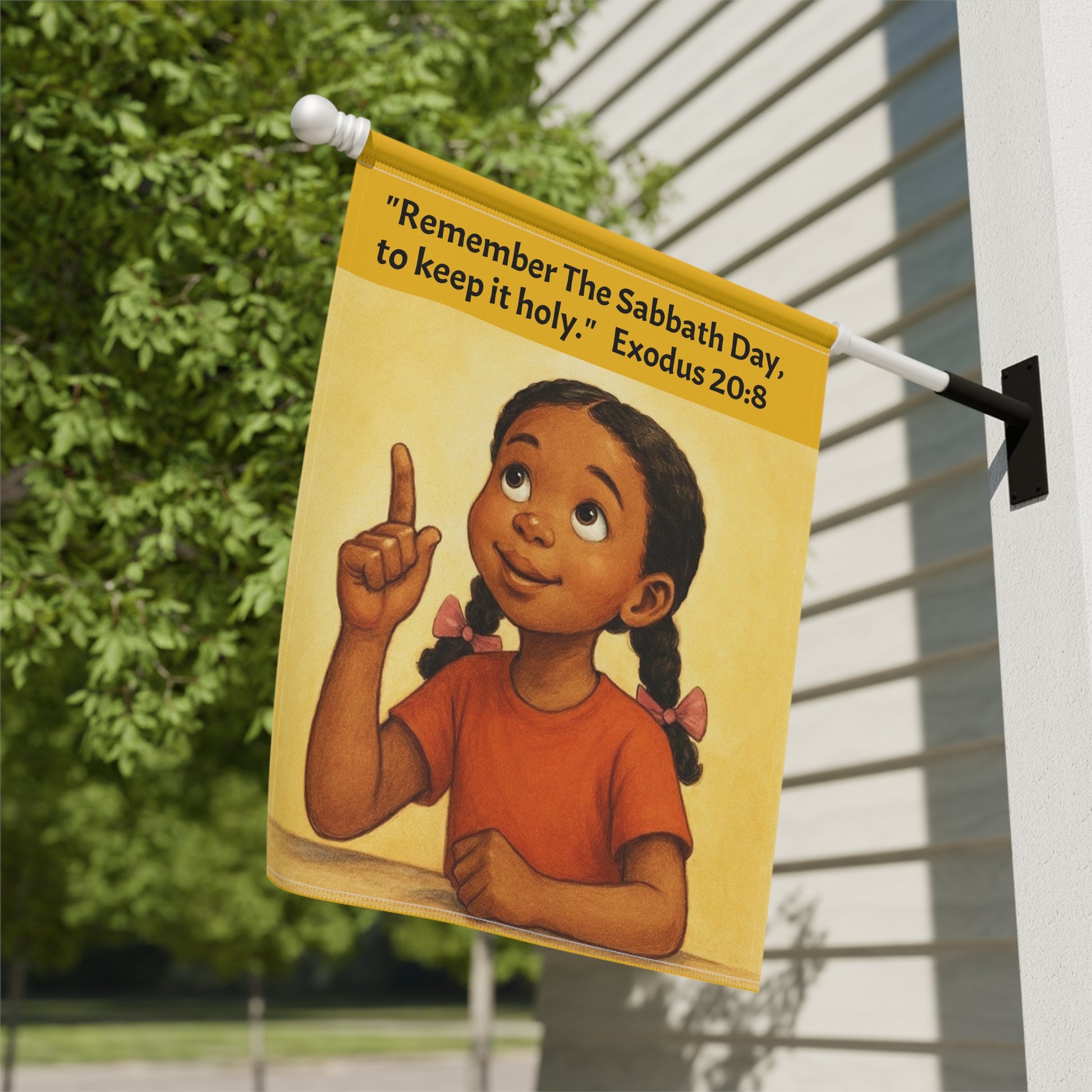 Display your faith and obedience in keeping the 4th Commandment with this beautiful flag/banner.. Product features - 100% poly poplin-canvas fabric for durability - Vibrant colors boast bright and crisp designs - Sleeve at the top for easy hanging - Available in two sizes to fit your space - Same design printed on both sides for visibility Care instructions - Clean by wiping with a soft, damp cloth.